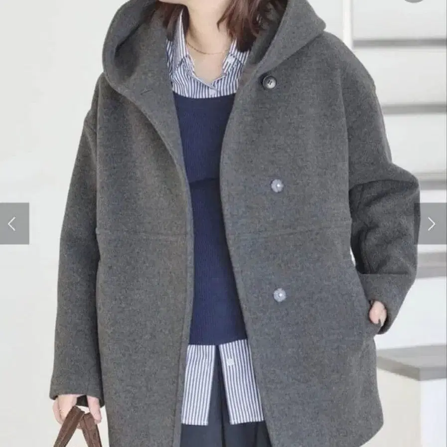 그레이 후드 부착 더블 버튼 코트 38 주디 컬렉션