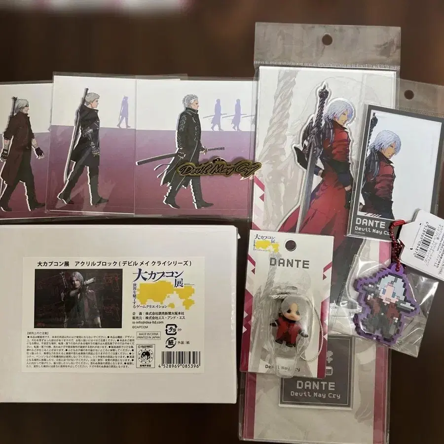 새상품입니다. 즉시 구매 OK입니다. 다중 구매를 원하시면, 전용으로 판매하므로 부담 없이 댓글 주세요. Devil may cry 로고 핀 배지*1 단테 아크릴 블록*1 코스튬 큐비*1 단테 아크릴 스탠드*1 러버 볼 체인*1 클리어 카드*1 엽서: Dante, Nero, Vergil 방문해 주셔서 감사합니다.