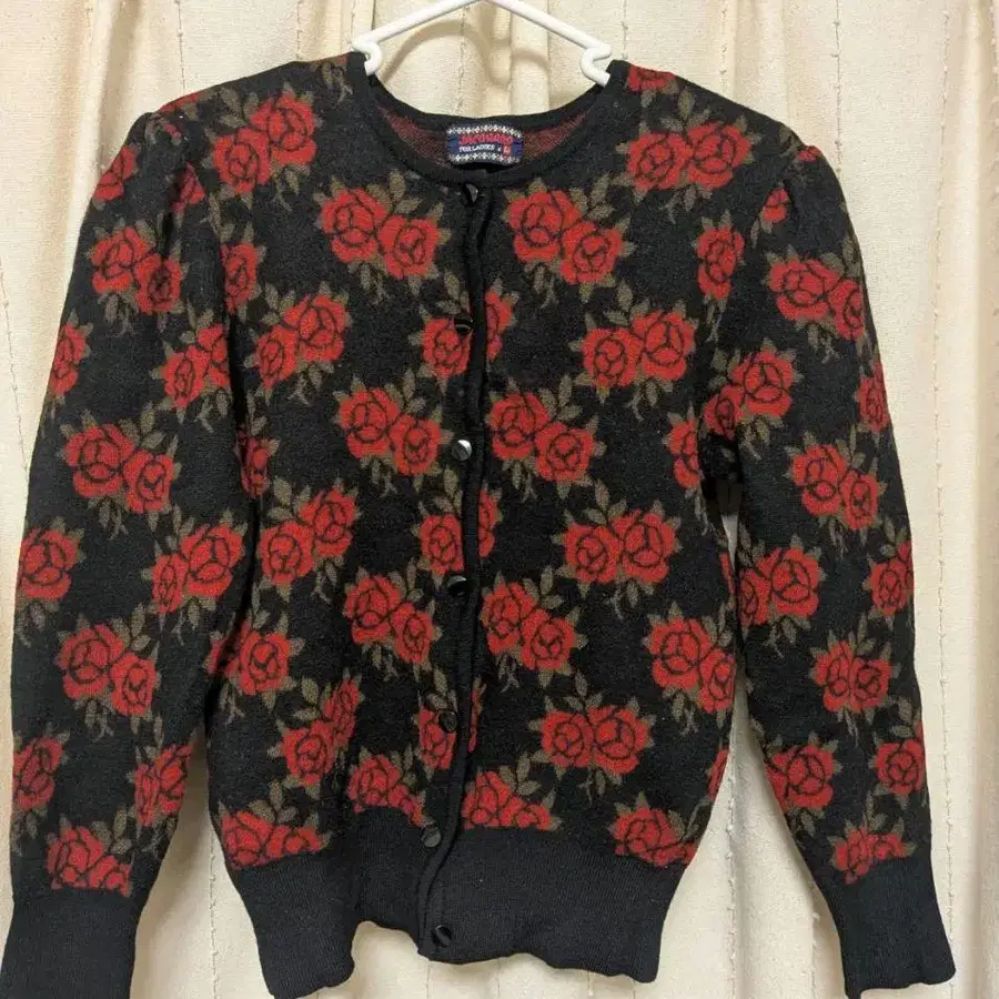 • 빈티지 가디건 꽃무늬 울 앤티크 올 패턴 아이보리 빨간색
