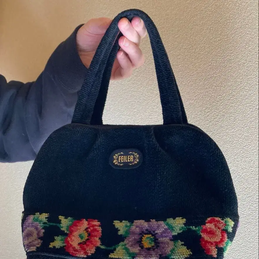 FEILER 블랙 플라워 자수 ★ 핸드백
