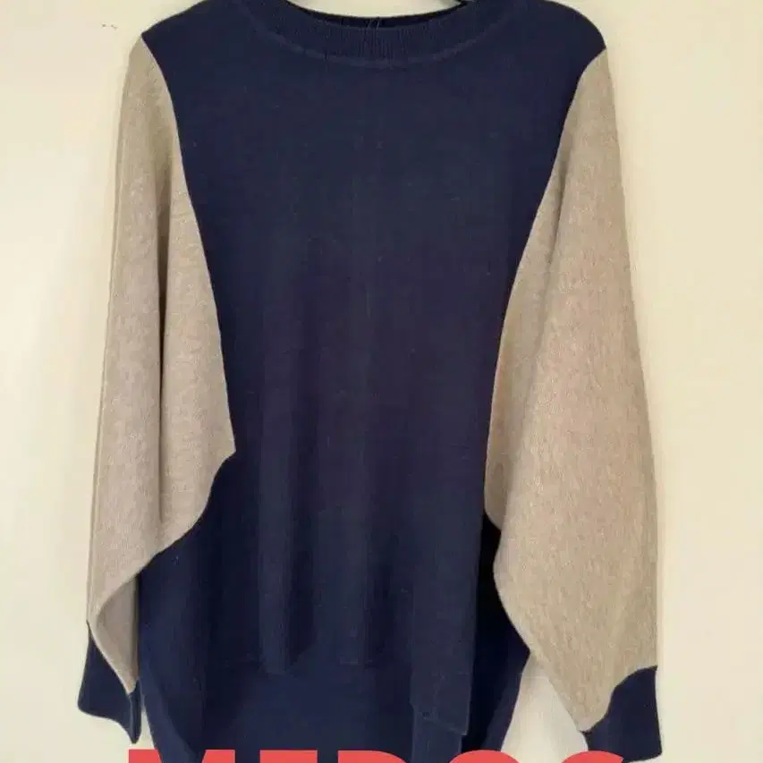 자동 번역되었어요. 원문보기네이비와 그레이의 바이컬러, 드롭 숄더의 릴랙스 핏 니트탑.