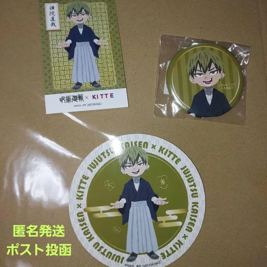 주술회전 사멸회유 KITTE 뉴이어 페스티벌 젠인 나오야 3세트 트레이딩 캔뱃지 특전 코스터 특전 스티커 유파켓 포스트 mini로 발송.