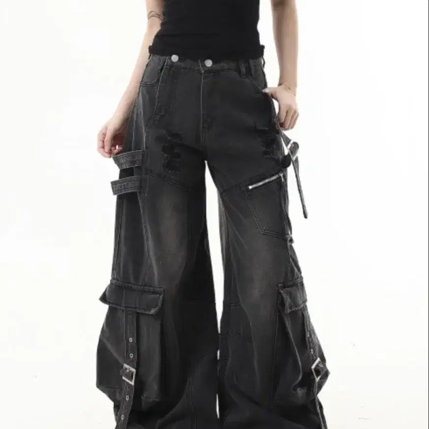 • 그레이 카고 팬츠 멀티 포켓 데님