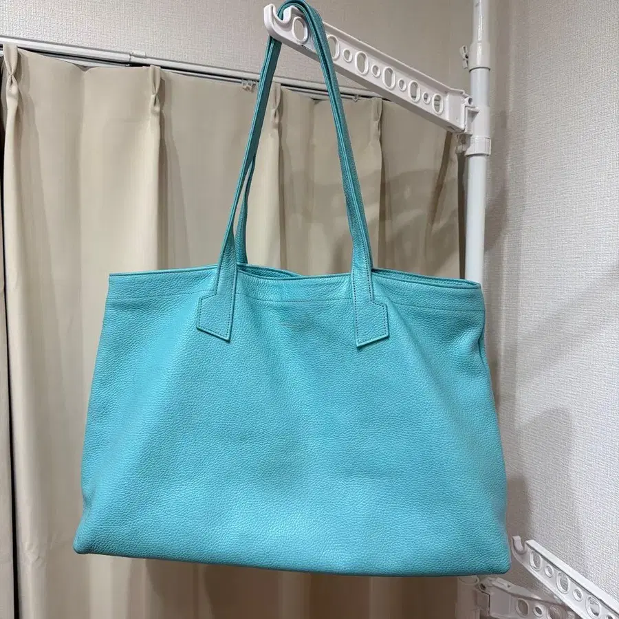 스카이블루 색상의 가죽 토트백으로, 심플한 디자인이 특징입니다. - 색상: 스카이블루 - 소재: 가죽 - 스타일: 토트백 방문해 주셔서 감사합니다. 오더로 제작했습니다. 어깨끈 길이는 70cm입니다.
