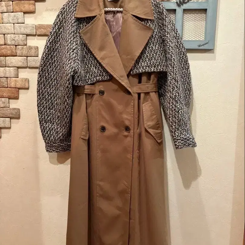 [Katharine Ross] 새상품급 롱 코트 트위드 퍼 고져스