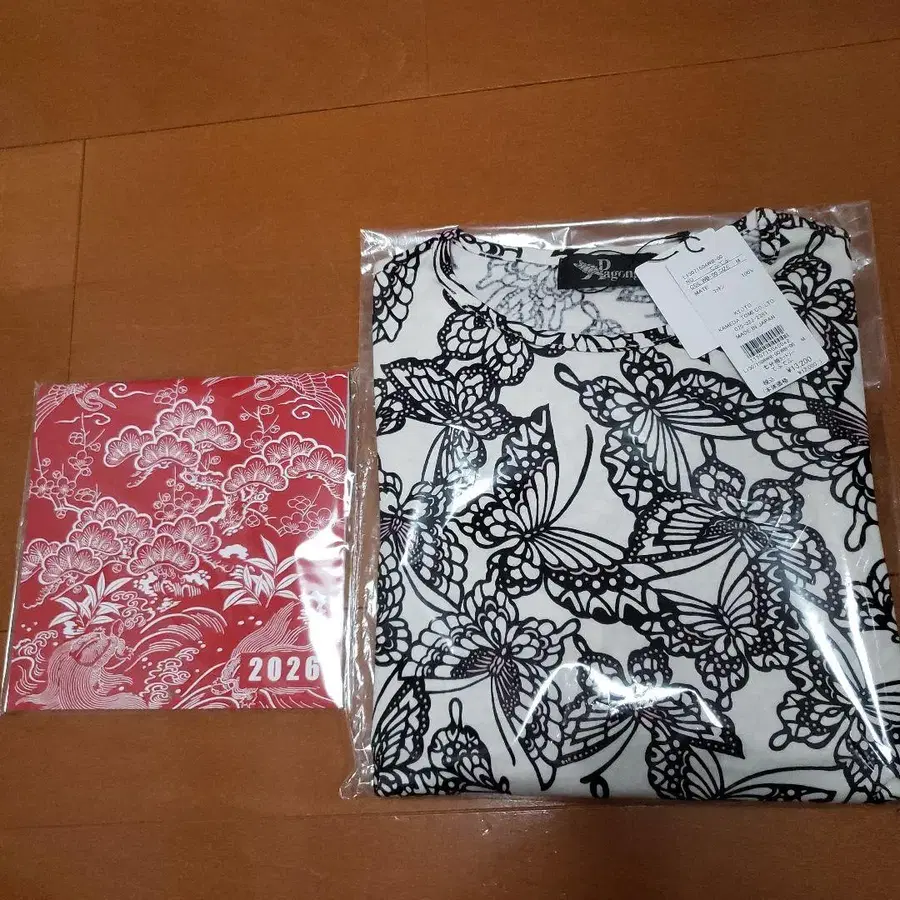 파곤 나비 패턴 7부 소매 T셔츠 (미개봉) 2026년 달력 포함