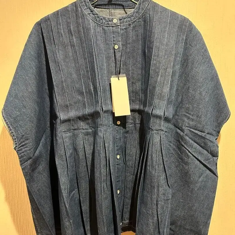 45R 인디고 자수 플리츠 블라우스 데님 셔츠