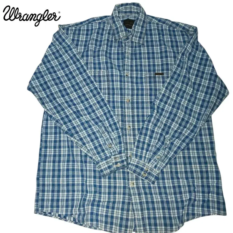 빈티지 80s 랭글러 긴팔 셔츠 블루 그레이 체크 XL