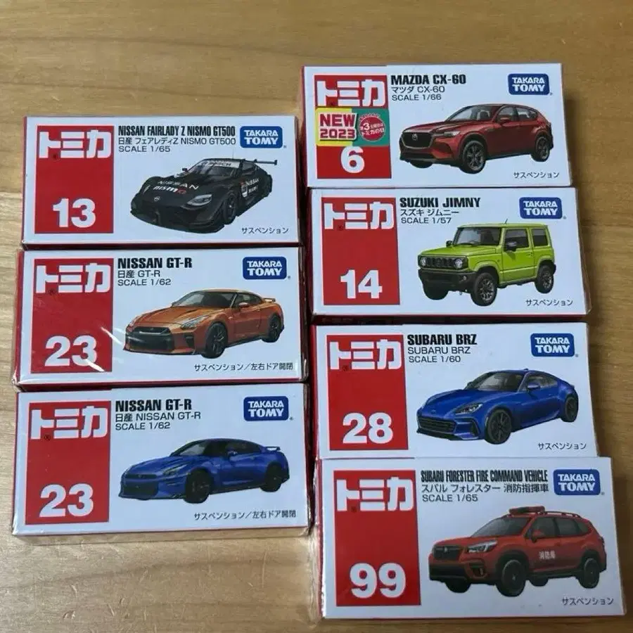 토미카 시리즈 미니카, NISSAN GT-R, MAZDA CX-60 등 다채로운 모델이 준비되어 있습니다. 그 외에도 토미카 등을 판매 중입니다. 꼭 확인해 주세요. - 브랜드: TOMICA(토미카) - 세트 내용: 닛산, 마쓰다, 스즈키, 스바루 7대 - 모델 번호: No. 13: 닛산 플레어 레이디 Z NISMO GT500 No. 23: NISSAN GT-R 오렌지 (2023년 단종) No. 23: NISSAN GT-R 파랑 No. 6: MAZDA CX-60 No. 14: 스즈키 짐니 No. 28: SUBARU BRZ (단종) No. 99: 스바루 포레스터 소방 지휘차 (단종) - 판매 상태 새상품, 미사용, 미개봉입니다. (선물로 받았지만 사용하지 않고 판매하게 되었습니다.) - 정성껏 포장하여 발송합니다. 검토 후 구매 부탁드립니다.