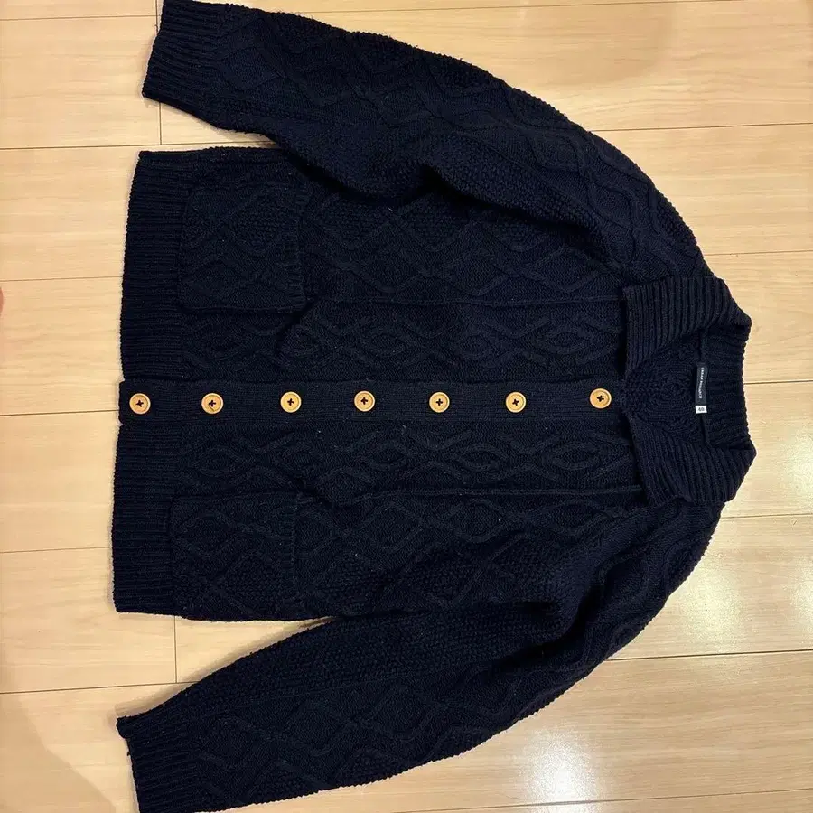 네이비 색상의 케이블 니트 가디건, 우드 버튼 포함, 사이즈 40. - 브랜드: URBAN RESEARCH - 사이즈: 40 - 색상: 네이비 - 디자인: 케이블 니트 - 버튼: 우드 버튼 방문해 주셔서 감사합니다.