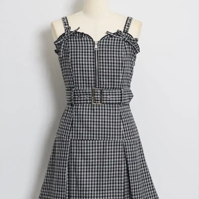 피움 크로스 벨트 티어드 미니 스커트 그레이 체크