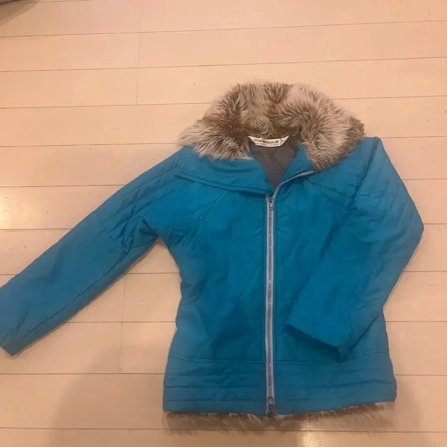 퍼 달린 터콰이즈 블루 다운 자켓
