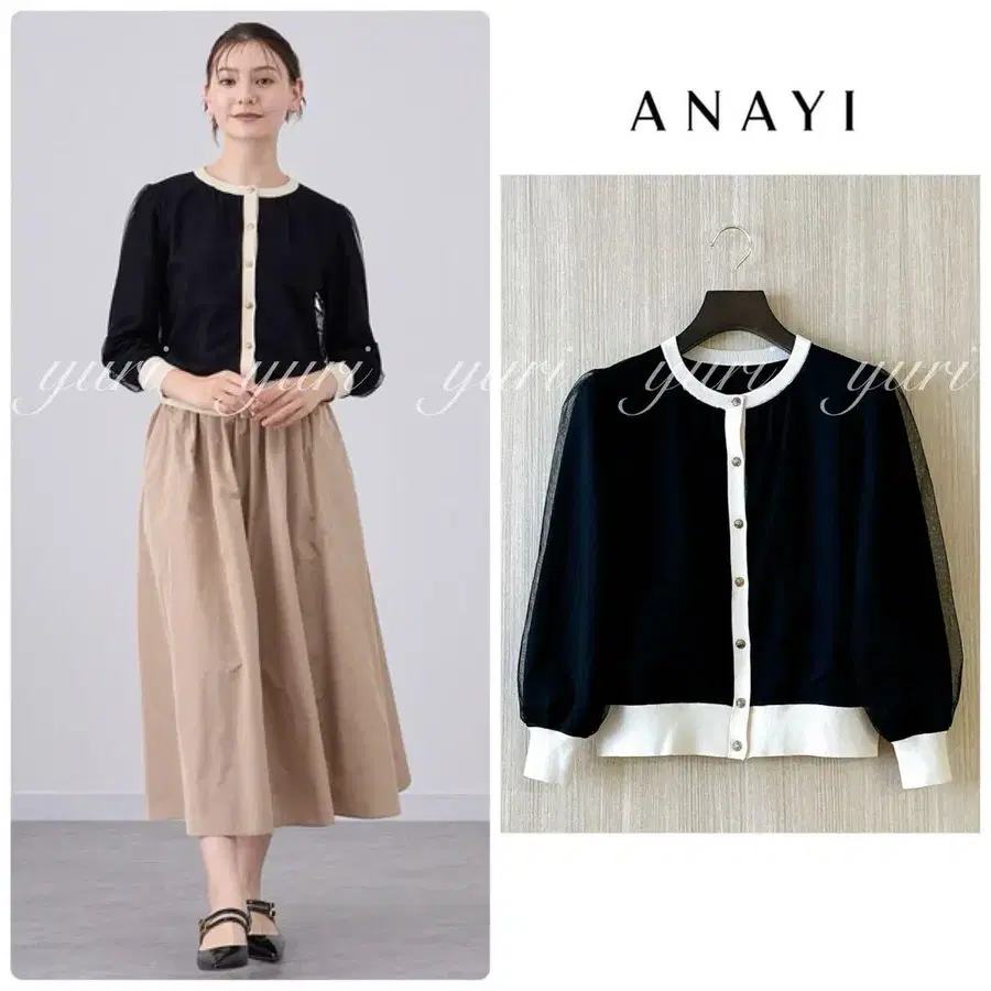 튤 레이어드 바이컬러 가디건