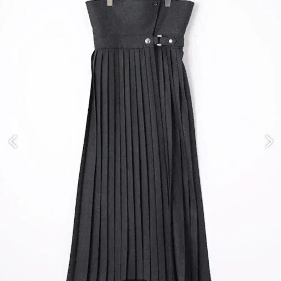 - 색상: 다크 그레이 - 스타일: 플리츠 스커트 - 소재: 울 혼방 - 디자인: 버튼, 벨트 루프 포함 칼리지 플란넬 소재를 사용한 허리 플랩 플리츠 롱 스커트. 허리 부분은 접으면 입체적인 실루엣으로, 펼치면 신체에 핏되도록 디자인되었습니다. 다이나믹한 롱 기장으로 여성스러운 엘레강트 실루엣을 완성합니다. 사이즈 - M 사이즈 - S