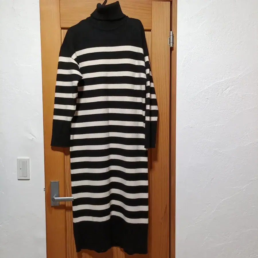 ZARA에서 구매하여 몇 번 착용했습니다. 블랙과 아이보리 가로 스트라이프 무늬의 터틀넥 롱 니트 원피스입니다. - 색상: 블랙과 아이보리 스트라이프 - 디자인: 터틀넥 긴팔 니트 원피스 - 스타일: 롱 원피스 - 소재: 니트 사이즈 S 새상품급이라고 생각하지만 개인적인 판단이므로 신경 쓰이시는 분은 구매를 삼가해 주시기 바랍니다. 가족 중에 흡연자나 반려동물은 없지만 자택 보관품이므로 이 점은 유의해 주시기 바랍니다.