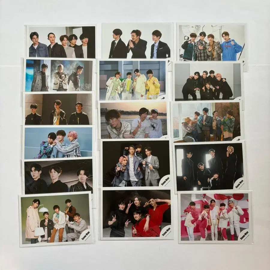 SnowMan 공식 사진 16장 세트 멤버 조합 및 인원은 다양하므로 사진으로 확인 부탁드립니다. 인터넷으로 구매 후 한 장씩 슬리브에 넣어 앨범에 보관했기 때문에 눈에 띄는 흠집이나 접힌 자국 등은 보이지 않지만, 완벽을 추구하시는 분은 삼가 주시기 바랍니다. 이와모토 히카루, 후카사와 타츠야, 라울, 와타나베 쇼타, 무카이 코지, 메구로 렌, 아베 료헤이, 미야타테 료타, 사쿠마 다이스케