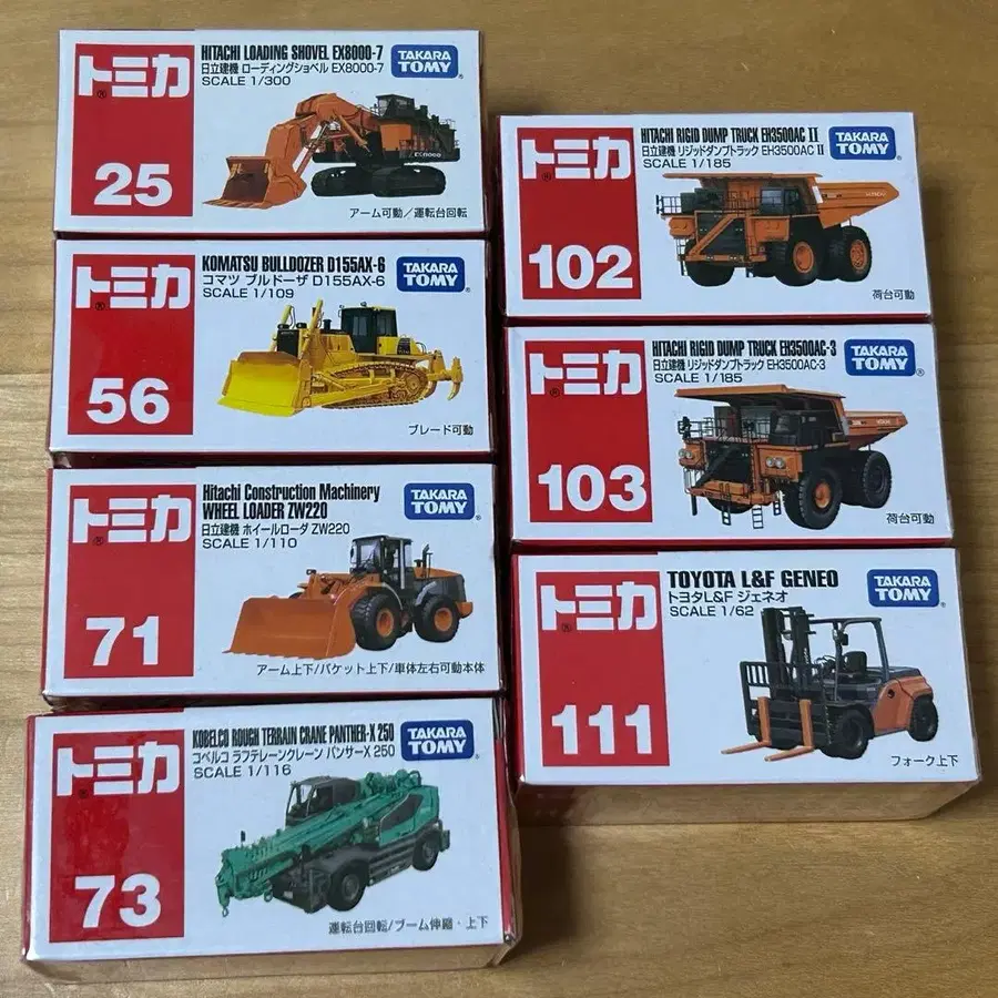 토미카 미니카 세트, 다양한 건설 차량 세트입니다.