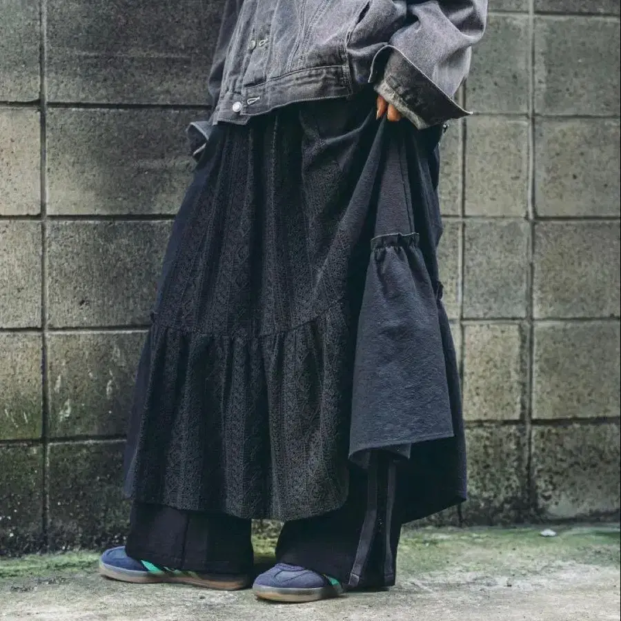 티어드 디자인의 블랙 롱 스커트. - 디자인: 티어드 - 스타일: 롱 스커트 허리밴딩으로 스트레스 프리! 안감 부착으로 비치지 않습니다. 158 사이즈 기준으로 맥시 길이입니다. 앞부분만 레이스 사양입니다. 멋진 스커트이지만, 저에게는 어울리지 않아 판매합니다. 완판템입니다! 정가 7000엔 정도 네고 불가 방문해 주셔서 감사합니다.