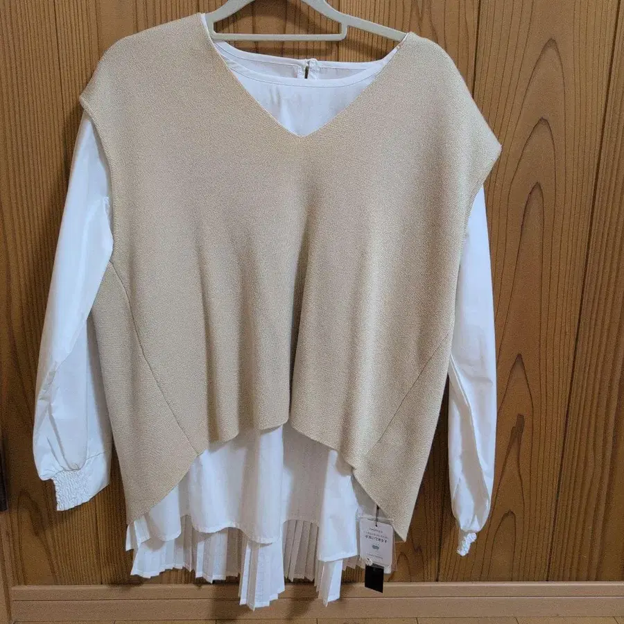 베이지 V넥 레이어드 스타일 셔츠, 긴팔과 플리츠 디자인이 특징. - 색상: 베이지 - 디자인: 레이어드 스타일 - 소재: 폴리에스테르 코튼 혼합 - 소매 길이: 긴팔 - 특징: 플리츠 디자인 - 넥라인: 베스트는 V넥 몇 년 전 봄에 구매 후 시착만 한 상품으로 자택 보관했습니다. 얼룩 등은 없지만, 혹시 발견하지 못한 부분이 있다면 양해 부탁드립니다. 사이즈는 개인 측정으로, 베스트 가슴 너비 54cm 기장은 뒷부분이 트여있어 앞 V넥 부분부터 34cm, 어깨 너비 45cm 블라우스 가슴 너비 51cm, 앞 57.5cm, 등부분 70cm, 어깨 너비 49cm 입니다. 자기소개를 읽으신 후 구매 부탁드립니다. 방문해 주셔서 감사합니다.