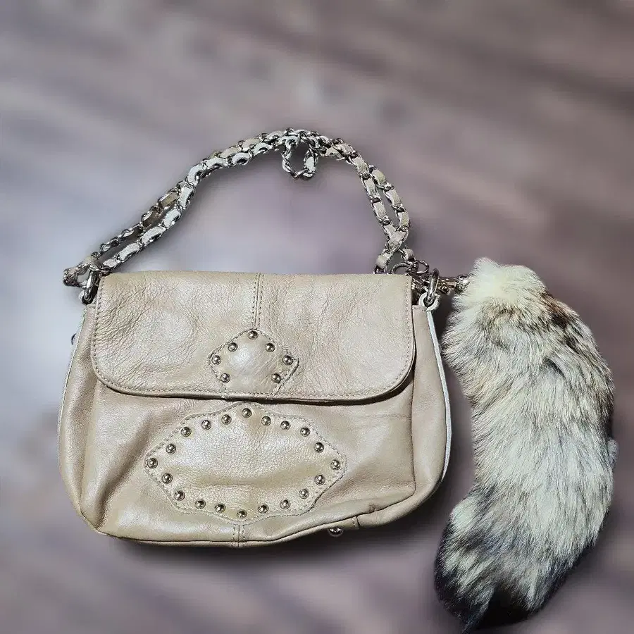 스터드/베이지 가죽 숄더백 퍼 포함