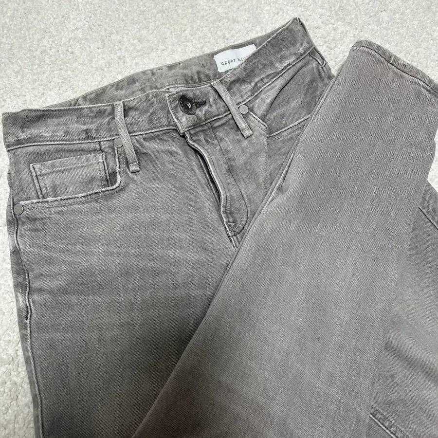 upper hights 어퍼 하이츠 STELLA 그레이 데님입니다. 몇 번 착용 후 보관했기 때문에 스크래치나 얼룩 없이 깨끗합니다. 사이즈 22 평평하게 놓았을 때 사이즈 개인 측정으로 인한 약간의 오차는 양해 부탁드립니다. 허리 32.5 인심 63 밑위 23 허벅지 22 밑단 폭 13