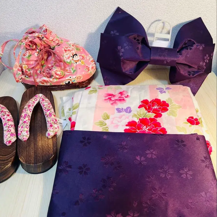 화려한 꽃무늬 유카타 세트, 면 100%로 쾌적한 착용감.