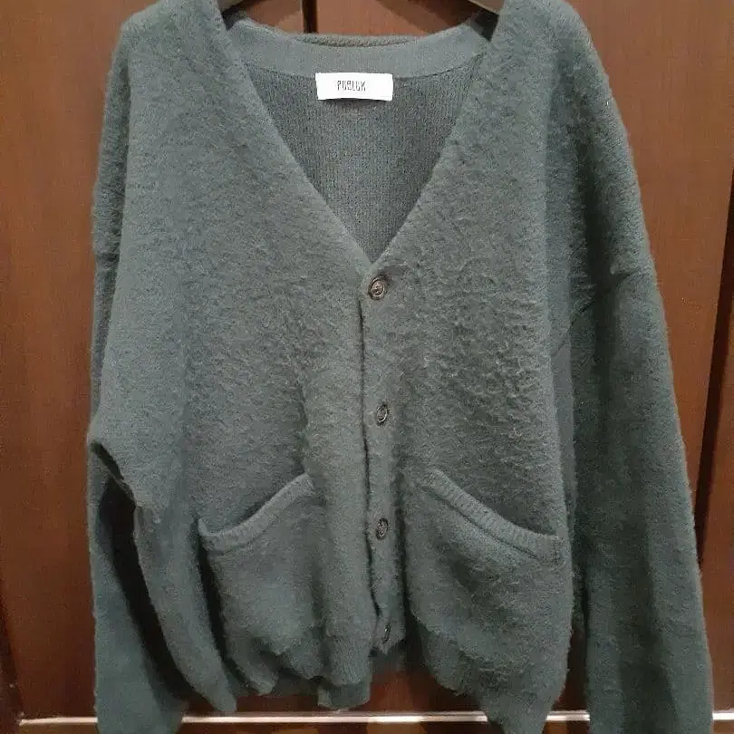 PUBLUX 다크 그린 샤기 니트 가디건 M 오버 사이즈 새상품급