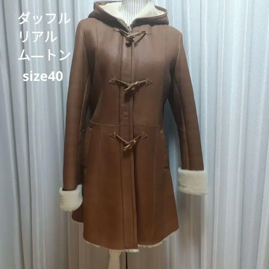 리얼 무스탕 더플 코트 A라인 후드 토글 포함 브라운