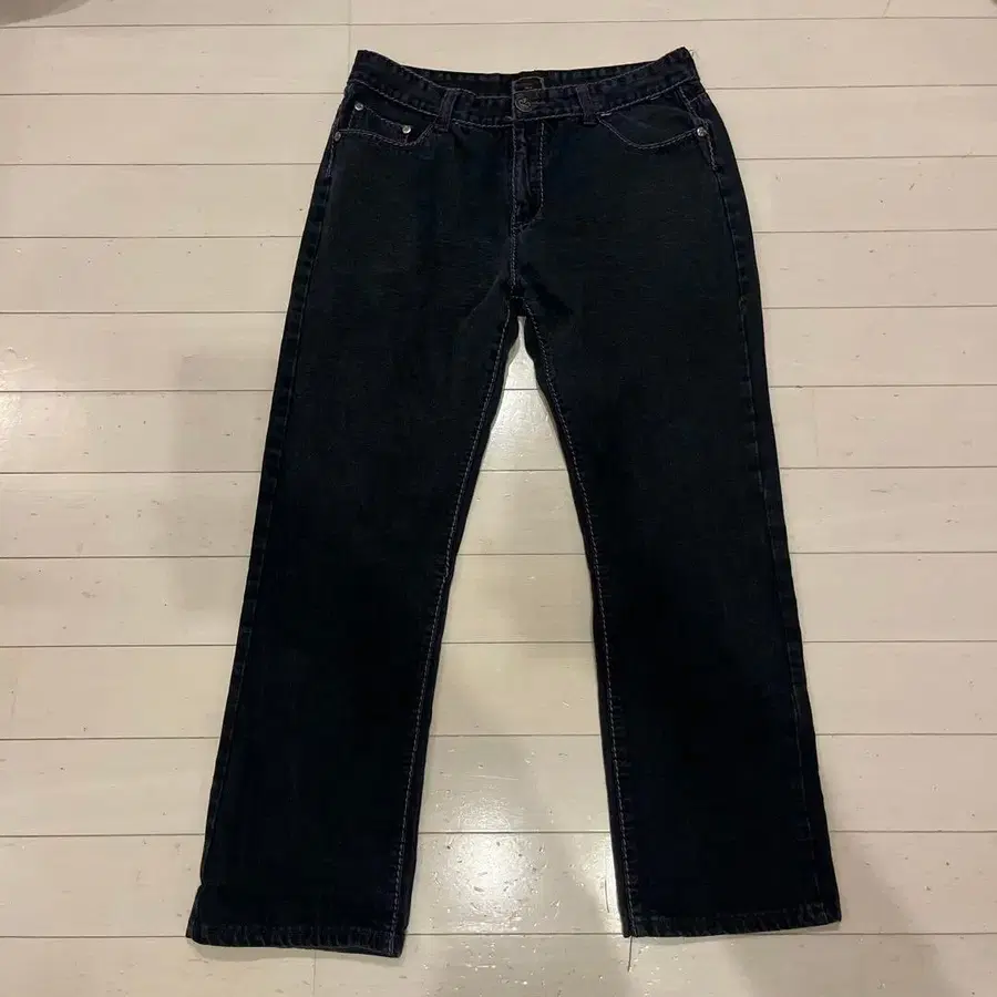 PATRONCITO 비즈 장식 블랙 데님 스트레이트 퍼플 스티치