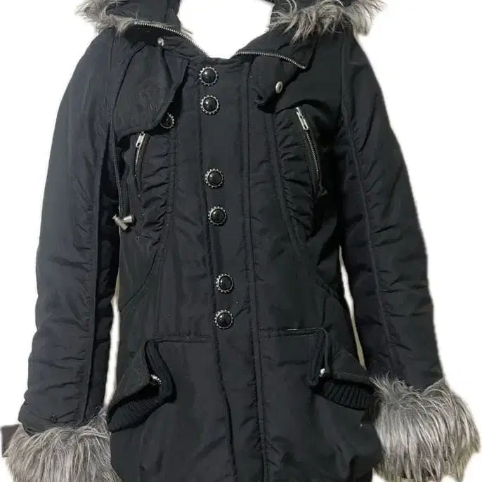 비쥬가 달린 퍼 자켓 블랙