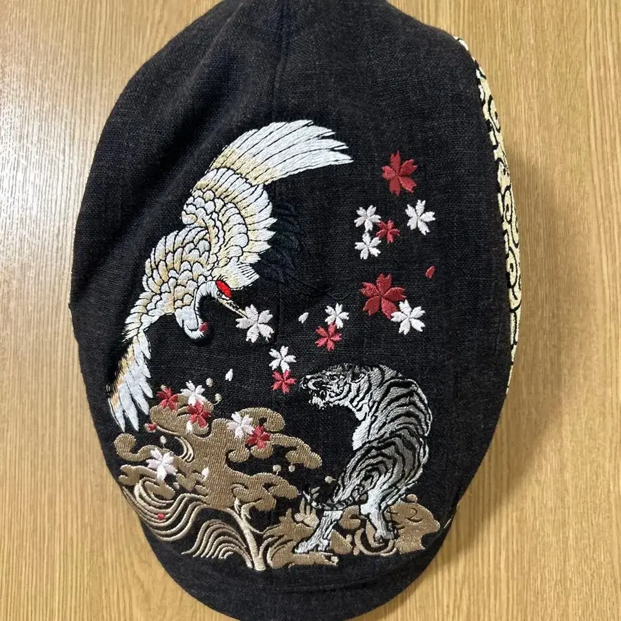 학, 호랑이 자수가 들어간 블랙 헌팅캡. 구제 의류 매장에서 구매 후 몇 번 착용했습니다. - 디자인: 학과 호랑이 자수 - 컬러: 블랙 - 소재: 린넨풍 - 장식: 골드 컬러 무늬 - 꽃무늬: 벚꽃 자수 방문해 주셔서 감사합니다.