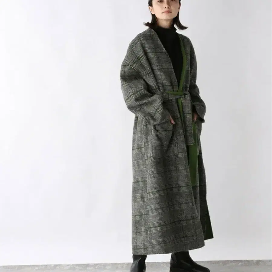 체크와 무지 리버서블 코트입니다. 벨트도 있습니다. 3회 정도 착용했지만 매우 깨끗한 상태입니다.