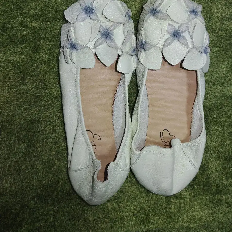 [새상품] 에스타시온 화이트 꽃 장식 플랫슈즈 ESTASION