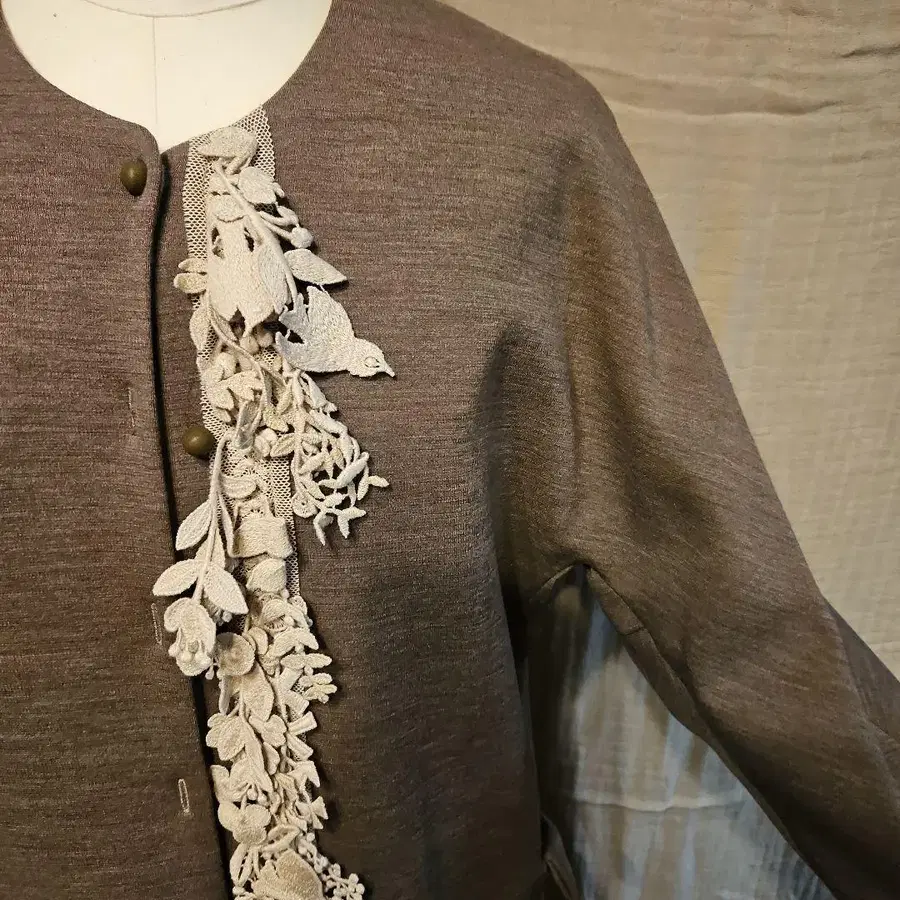 소매 끝이 일부러 짧게 디자인되어 있어 겨울에는 암커버를, 봄에는 안에 입은 블라우스 등을 보이게 연출하면 멋질 것 같습니다.