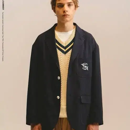볼륨감 있는 엠블럼 로고가 특징인 블레이저