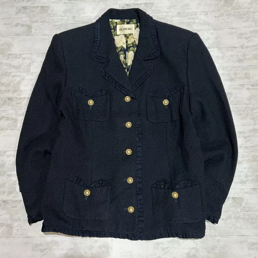 잉게보그 핑크하우스 INGEBORG 자켓 빈티지 골드 버튼 프릴 자켓 장미 패턴 안감 꽃무늬 클래식 레트로 80s 90s 여성용 구제 의류