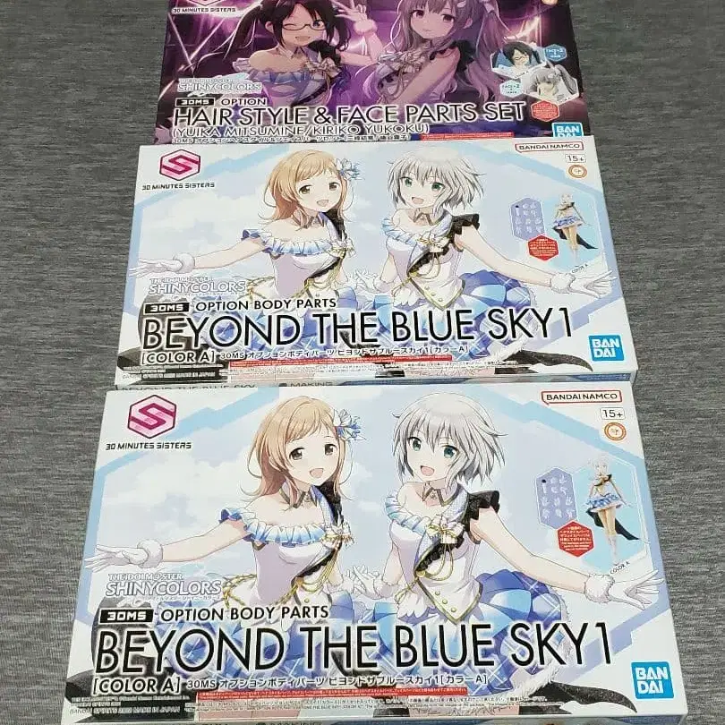 아이돌마스터 샤이니 컬러즈 30MS 옵션 헤어스타일 & 페이스 파츠 세트 (미츠미네 유이카/유우코키리코)와 옵션 바디 파츠 비욘드 더 블루 스카이 1 [컬러 A] 2개의 묶음 판매입니다.