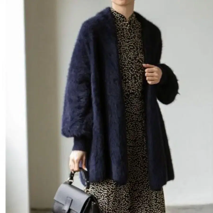 NOBLE 퍼 니트 퍼프 가디건 네이비