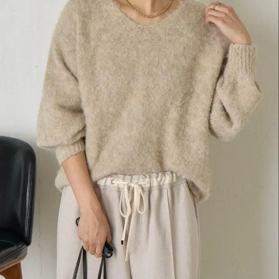 심플하면서도 고급스러운 털의 표정이 한 장만으로도 가을, 겨울 코디를 화려하게 연출하는 니트입니다.