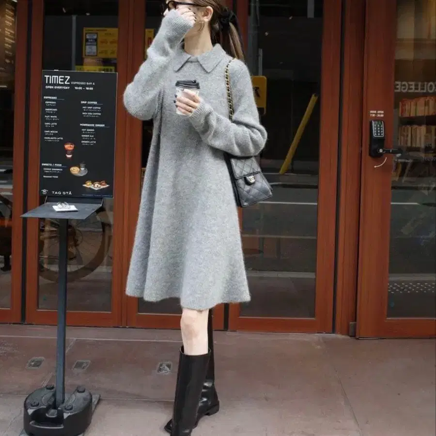• 펄 디자인 스퀘어 넥 니트 원피스