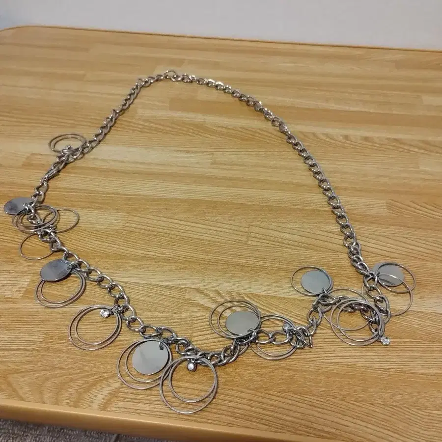 - 디자인: 체인과 원형 모티브가 조합된 목걸이