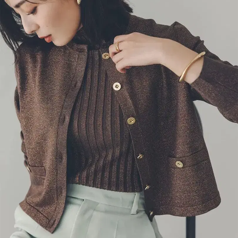BROWN과 SILVER 색상은 라메사를 넣은 니트 직물입니다.