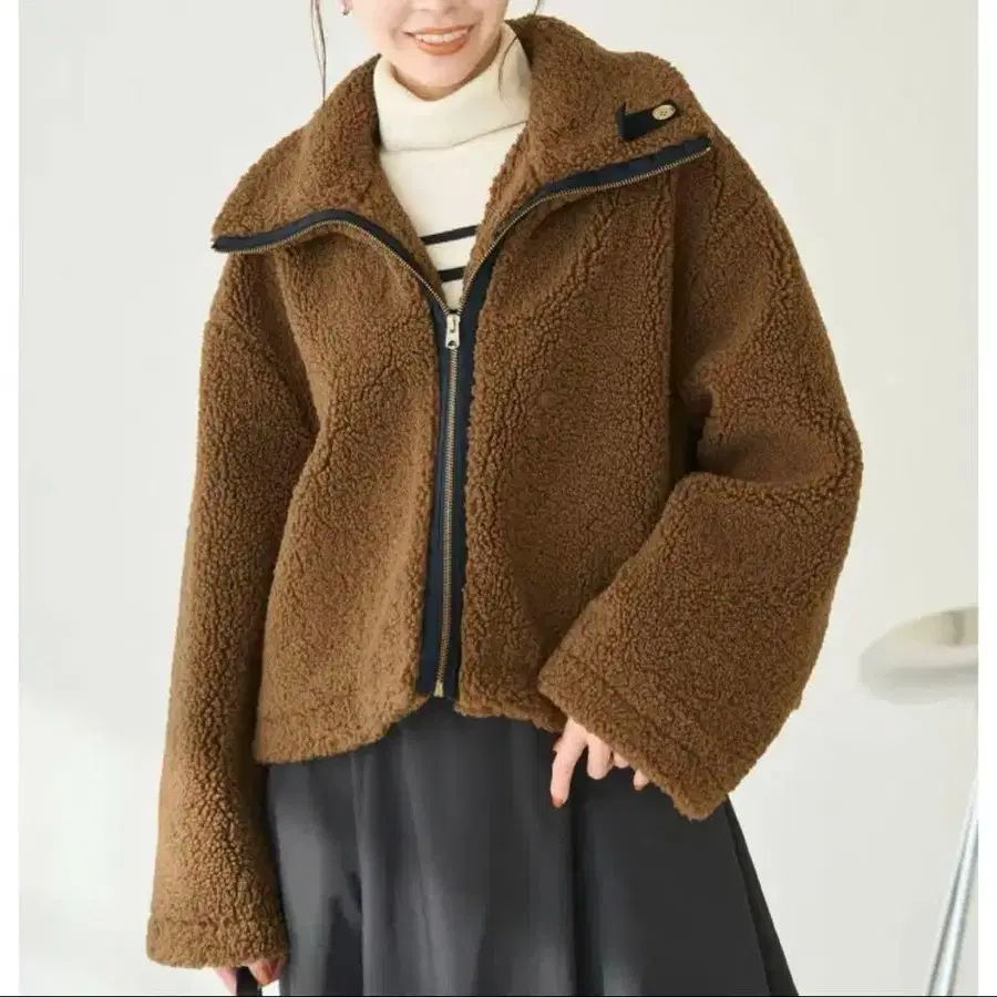 [소재감] 복슬복슬한 보아 소재. [디자인 실루엣] 크게 열리는 옷깃이 특징인 집업 블루종.
