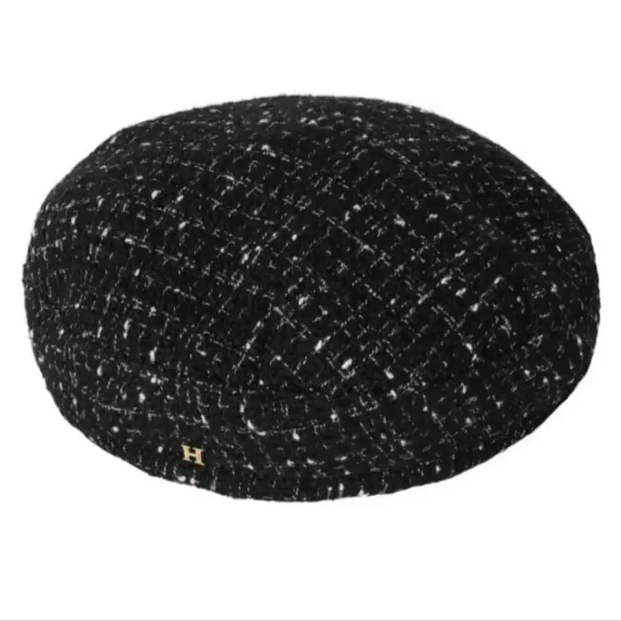울 혼방 니트 모자 비니 블랙 화이트 스트라이프