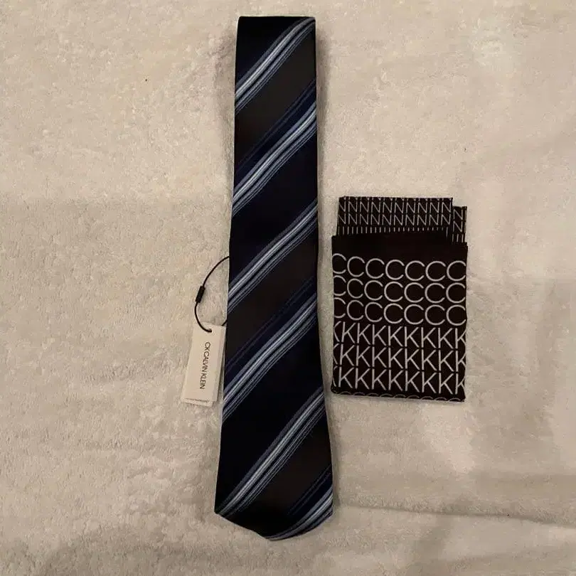 캘빈클라인 네이비와 블루 스트라이프 넥타이와 네커치프 세트