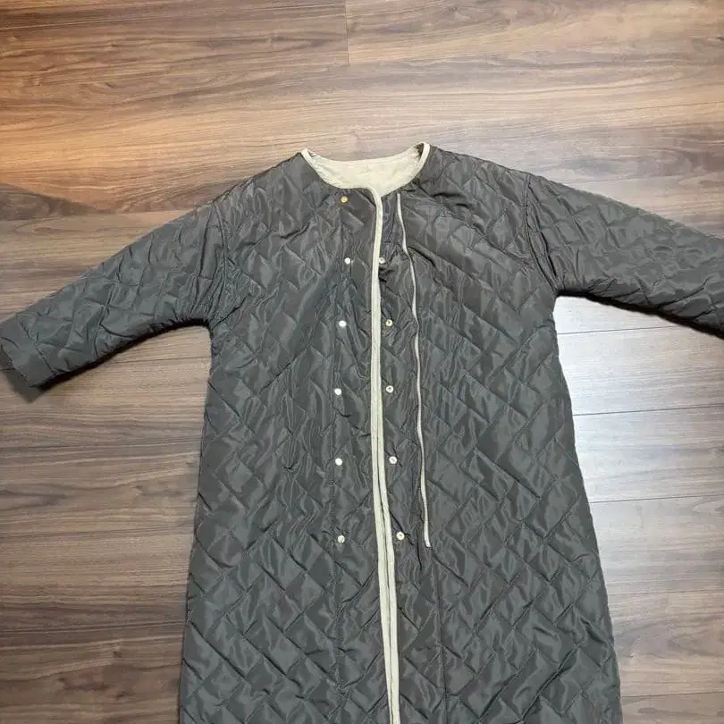 브라운 퀼팅 롱 자켓 리버서블