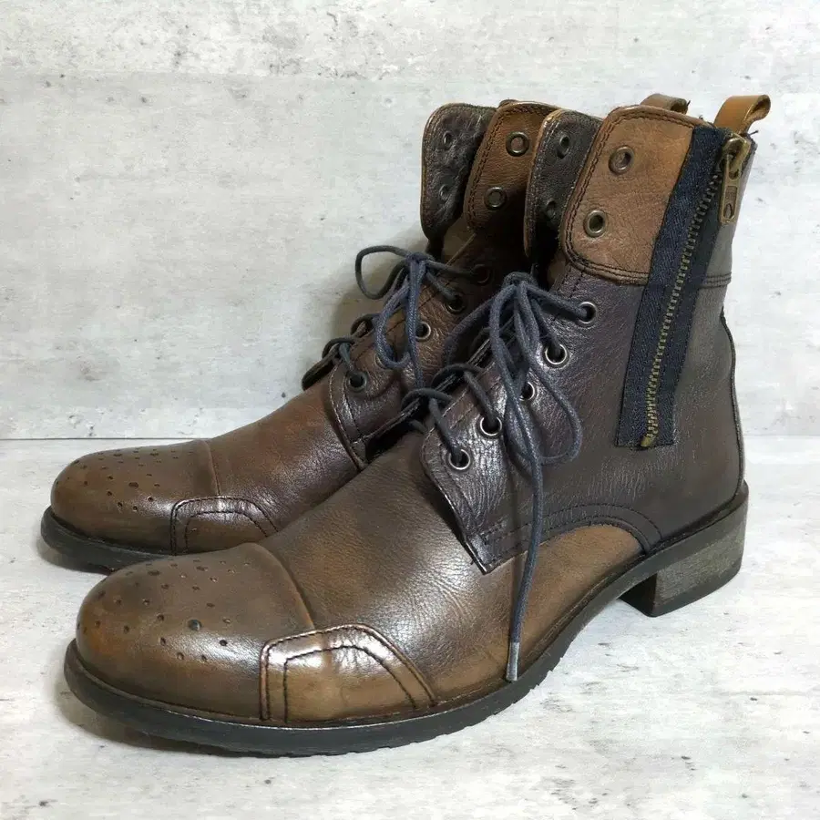 상품명 - 사이드 지퍼 워크 부츠 ☆ 레이스업 ☆ 메달리온 ☆ 스트레이트 팁 ☆ 천연 가죽 ☆ 가죽 ☆ Made in ITALY ☆ 남성용 가죽 신발 ☆ Y2K ☆ 7462