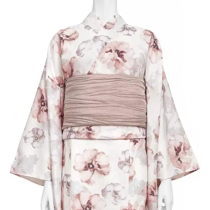 연한 그레이 꽃무늬 자수 후쿠로 오비