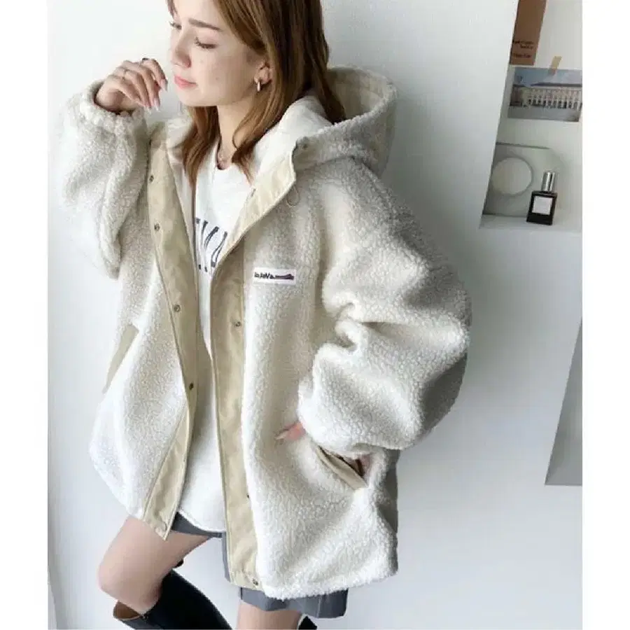 보아 자켓 퍼 자켓 프리 사이즈 une mansion 화이트