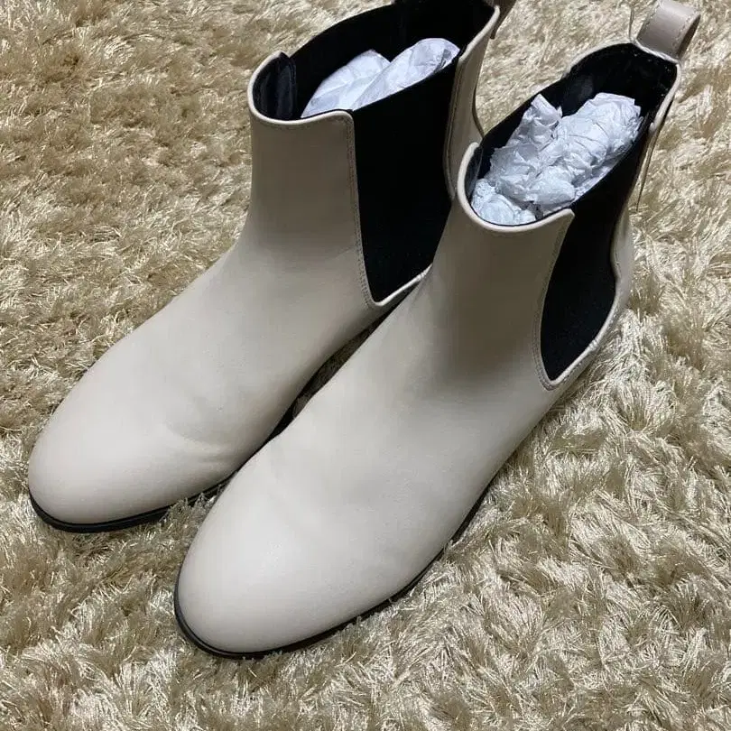 [ FOOT INDUSTRY ] 사이드 고어 가죽 부츠 화이트 43